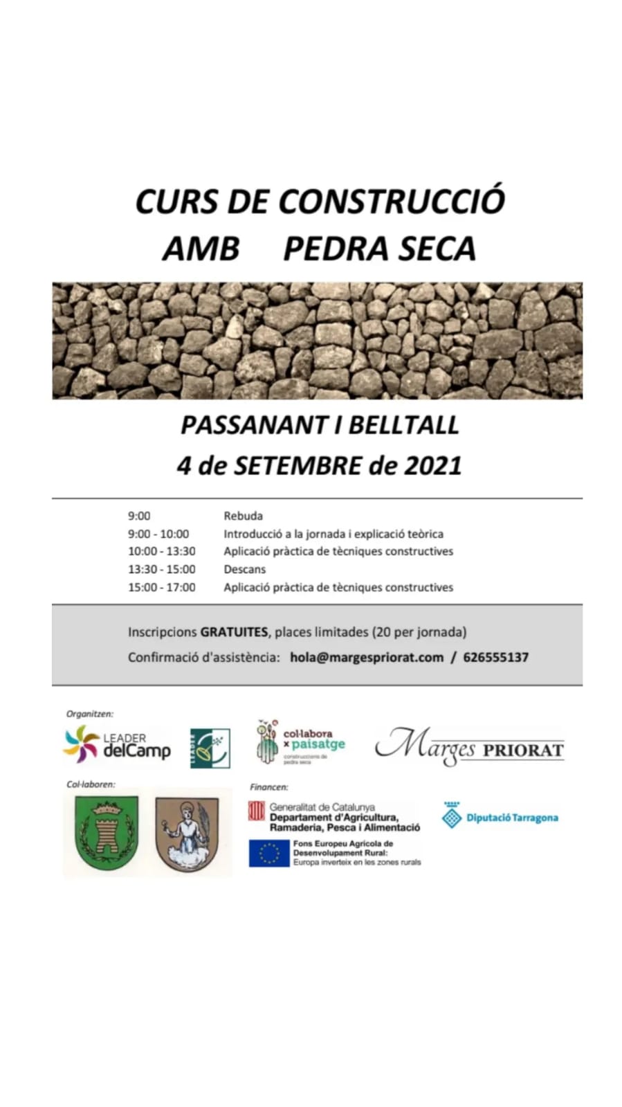 Us adjuntem el cartell del curs de pedra seca que es farà a Passanant i Belltall.